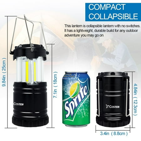 Camping Lantern Super Bright, Costech Latest COB Technology (350 Lumen) Portable Outdoor Lights, Hanging Flashlight Camping Gear Equipment with Batteries for Hurricane Storm Outage Emergency (2 pack)