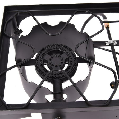 【Sturdy and Durable Design】This gas burner is made of cast iron, which is sturdy enough for long time use. Besides, the powder coating makes it waterproof and anti-rust. It is perfect for camping, tailgating, catering, hunting, back patio and more.【Powerful Cooking Ability】Equipped with a cast iron head and it can output a whopping BTU of 150,000, this powerful burner can boil water and cook your food easily. And with the adjustable fire power, which will make your cook more delicious.【Easy to Transport and Storage】Stand has detachable legs for easy storage and let you carry it conveniently. Removable, adjustable legs allow stable placement and help make transport and storage easy.【Complete Accessories for Outdoor Use】It creates a perfect camp kitchen for you, with matched accessories like BBQ Grill boxes, professional griddles, reversible cast iron grills, and even artisan pizza ovens.【Easy to Set Up】With clear and brief instruction, this sturdy burner allows for immediate use without the headache of a complex set-up. You can quickly assemble and use it when you are outside.