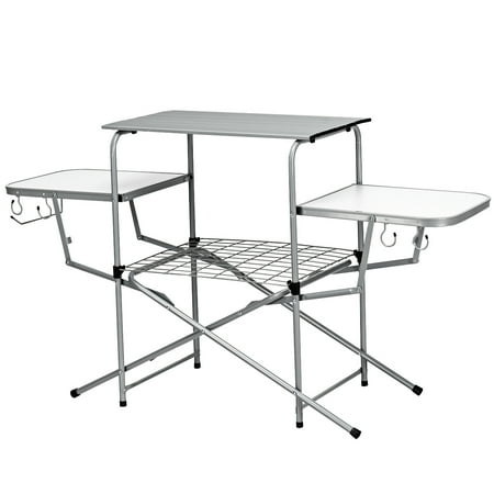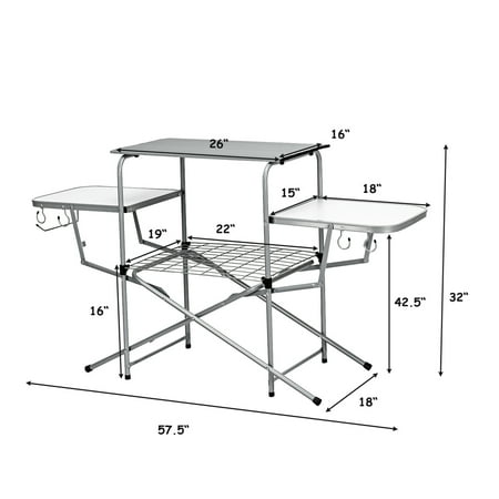 Color: As the picture showsMaterial: Aluminum + Steel + MDFProduct Dimensions: 57.5″ x 18″ x 32″ (L x W x H)Net Weight: 17 lbsWeight capacity of surface board: 44 lbsWeight capacity of two side boards: 22 lbsPackage includes:1 x CAMP Folding Table1 x Portable Bag