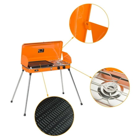 Liquid Propane BBQ Gas Grill,Barbecue Grill Outdoor Cooking Camping Stove Portable Stainless Steel,Orange