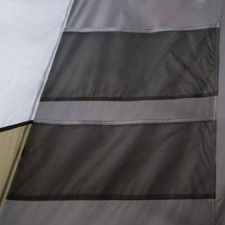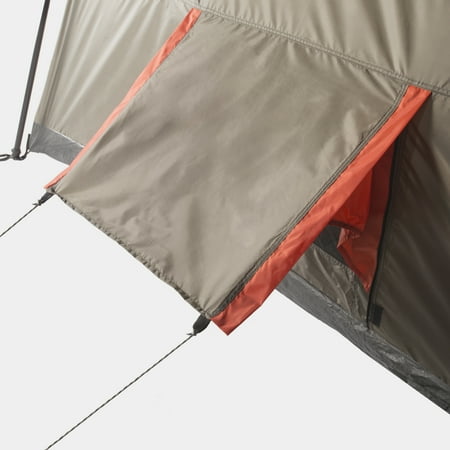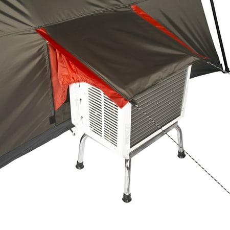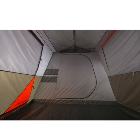 The Ozark Trail 16′ x 16′ Instant Cabin Tent sleeps 12 and has a rainfly and carry bag for convenience. It also comes with cord access, so you can camp in the backyard and use the electricity from your home. Keep cool with the oversized ground vent, which can also fit an air conditioner. Ozark Trail 12-Person 3-Room L-Shaped Instant Cabin Tent:Sets up in under 2 minutesNo assembly required; poles pre-attached to tentOzark Trail instant cabin tent sleeps 12Fits 3 queen airbeds3-room tentIncludes rainflyFully taped factory-sealed seams provide dry-zone camping with leak protection7 fully closeable windowsFactory welded 6″ tub floorFree-standing frame designElectrical cord accessCarry bag included25 Tent stakes included, made of steelGround vents fit air conditionerModel# WMT-161682B