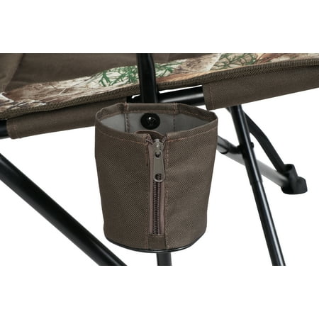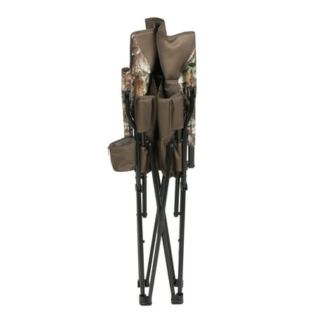 Ozark Trail Hard Arm Camo Chair:Real tree edge camoCompact folding frame for easy transportationPadded back area for extra comfortHard arms allow for easy in and out of chairSide cup holder keeps beverages or important items close byWeight capacity: 300 lbsDimensions: 23.03″ × 16.54″ × 37.2″