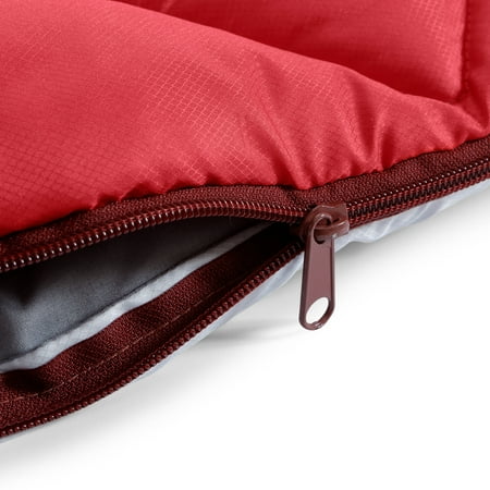 Ozark Trail Hazel Creek 40F Regular Rectangular Sleeping BagPerfect for cool weather campingFoot area has an extra layer for cool nightsUnzip the added bottom zipper to let your feet breathe in warm weatherUnzip completely for a blanketThe rectangular shape provides more leg roomMeasures: 78? L x 36? W (198.1 cm x 91.4 cm)Weight: 4.6 lbsDurable and easy to cleanModel Number: 30614