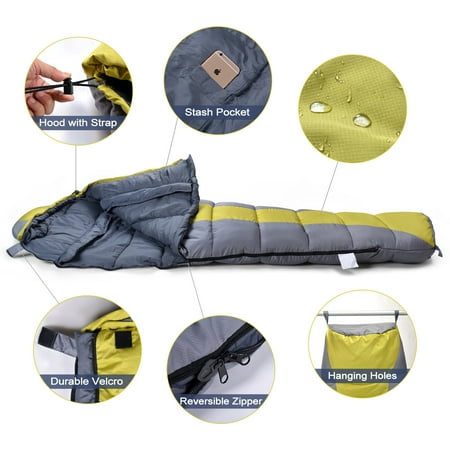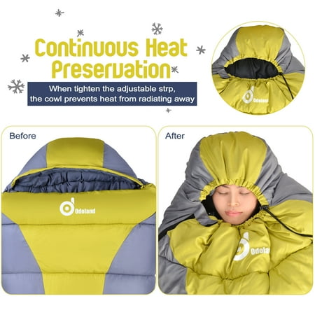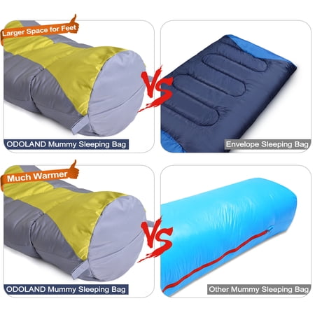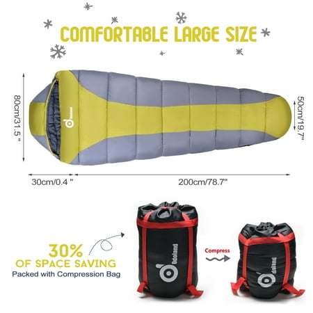 Odoland Cold Weather 32F Mummy Sleeping Bag – Windproof, Waterproof, Super Comfortable Bag with Compression Sack for Camping, Traveling, Survival and Outdoor Activities