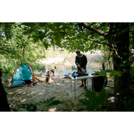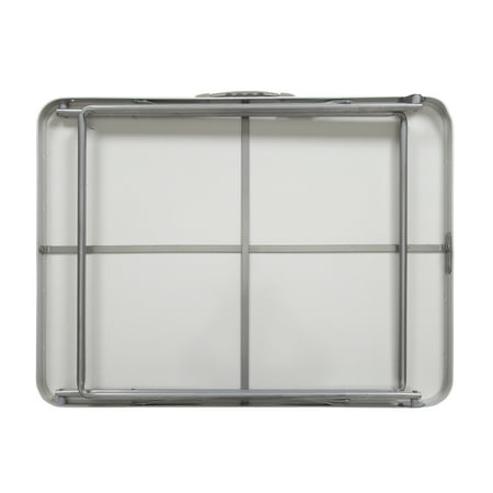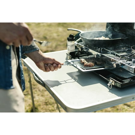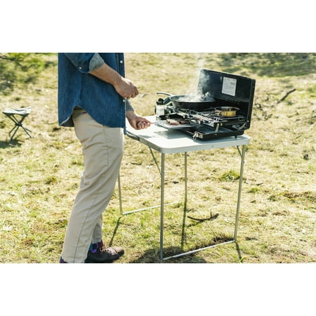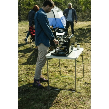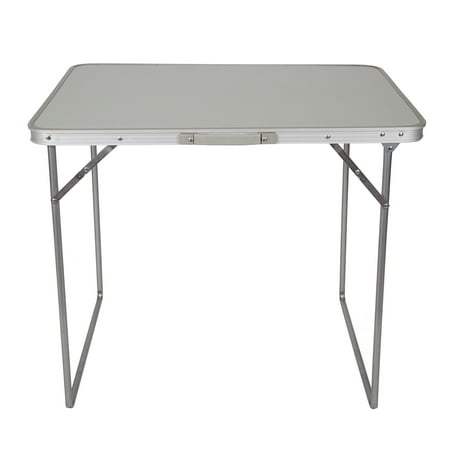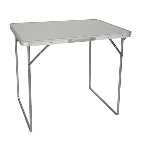 Portable and convenient multi-use folding table.Lightweight and sets up in seconds.Great for camping, BBQs, fishing, road trips, and more.Melamine coated MDF tabletop for quick and easy cleanup.Locking steel legs for stability.Retractable carry handle.Materials: Melamine, AluminumMeasurements: 27″ x 31.5″ x 23.6″Capacity: 65 lbsWeight: 7.45 lbs