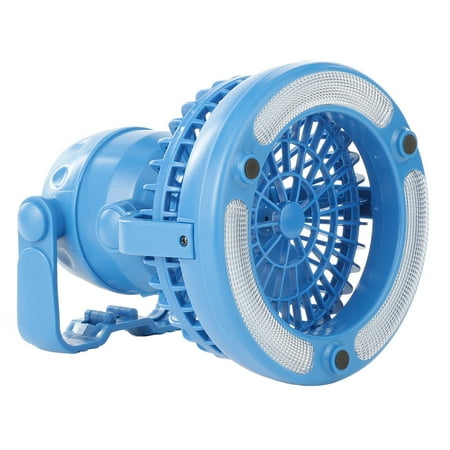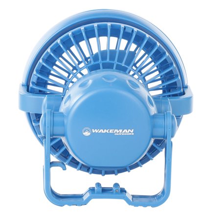 Wakeman 2 in 1 Portable Camping Lantern with Fan, Model #W470048, BlueLong lasting durabilityLightweightWater and weather resistantMultifunctional options (hang or setup to stand, lighting and cooling options)Dimensions: 6.25″ L x 6.25″ W x 7″ HUses 2 D cell batteries (not included)